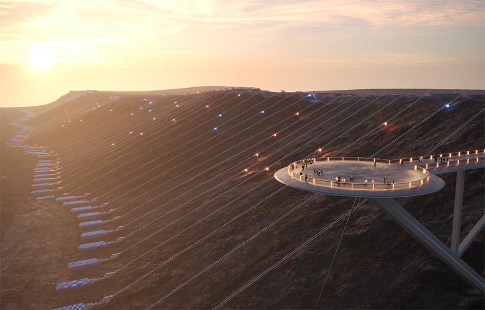 Gravity-based energy storage involves lifting heavy weights to store energy and then lowering them to release that energy when needed. This method leverages gravitational potential energy, providing a sustainable and efficient solution for energy storage and distribution. G-VAULT is a family of gravity-based solutions being developed by Energy Vault. These combine time-tested energy principles with modern engineering and cutting-edge materials, as well as AI software. G-VAULT is designed for long-term use, providing 35 years without degradation, while utilising eco-friendly processes that contribute to a circular economy. Safety is also a key feature – no electrochemical reactions occur and there is zero need for fire protection. To date, Energy Vault's G-VAULT product suite has focused primarily on the company's EVx platform, originally grid connected (5 MW) and tested in Switzerland, which features a highly flexible and modular architecture that can scale to multi-GW-hour storage capacities. The EVx is currently being deployed in China (3.7 GWh of announced projects), Egypt, Greece, and 16 countries in the South African Development Community (SADC). The energy storage needs of the SADC are projected to reach 25 GW/125 GWh by 2035. A 10-year agreement between Energy Vault and this region – involving multi-GWh of added capacity – will help significantly in meeting its demand. Through their newly announced partnership, Energy Vault and SOM are now designing a new platform of G-VAULT solutions focused on improved economics, energy density, and sustainability. These are named EVu, EVc, EVy, and EV0. EVu, the first of the giant towers pictured above, will provide a way of integrating GESS into supertall buildings with heights of more than 300 metres (984 ft), and potentially up to 1,000 m (3,281 ft). These structures will have the capacity to reach multi-GWh of storage, not only powering the building itself but also adjacent buildings. According to Energy Vault, this technology will enable a carbon payback (how long it takes a project to offset the greenhouse gases emitted from its construction) within accelerated timeframes of 3-4 years. EVc, the second building presented above, aims to demonstrate the first ever deployment of large-scale, pumped hydro energy storage systems integrated within supertall structures using a modular water-based system. Its cylindrical shape is optimised to withstand environmental factors such as wind and seismic events. In addition to large-scale energy storage, both EVu and EVc can incorporate mixed residential use. Their designs also make them flexible enough to be constructed almost anywhere in the world. Next on the list is EVy, which applies gravity technology to pre-existing slopes and topography to store energy with a minimal environmental impact and reduce the need for human-made structures. According to Energy Vault, this can achieve "ultra-low-cost capital expenditures through eliminating the construction of the fixed frame structure."
