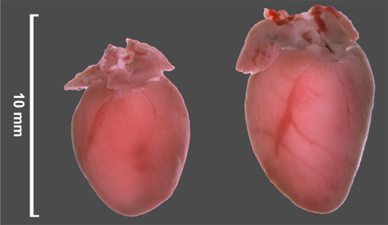 When they inhibited one of these two specific molecules, they were able to protect the rodents against pathological heart growth and failure. With these findings, the scientists hope to develop therapeutic approaches that could one day protect humans against heart failure. Respiratory distress, fatigue, and attenuated performance are symptoms that can accompany heart failure. A reason for this can be an enlarged heart, also known as cardiac hypertrophy. This may develop when the heart is subjected to permanent stress. For example, due to persistent high blood pressure or a valvular heart defect. In order to boost the pumping performance, heart muscle cells enlarge — a condition that frequently results in heart failure if not treated. A research team at the Göttingen Max Planck Institute for Biophysical Chemistry and the Hannover Medical School discovered that two small RNA molecules play a key role in the growth of heart muscle cells: the microRNAs miR-212 and miR-132. The scientists had observed that these microRNAs are more prevalent in the cardiac muscle cells of mice suffering from cardiac hypertrophy. To determine the role that the two microRNAs play, the scientists bred genetically modified mice that had an abnormally large number of these molecules in their heart muscle cells.