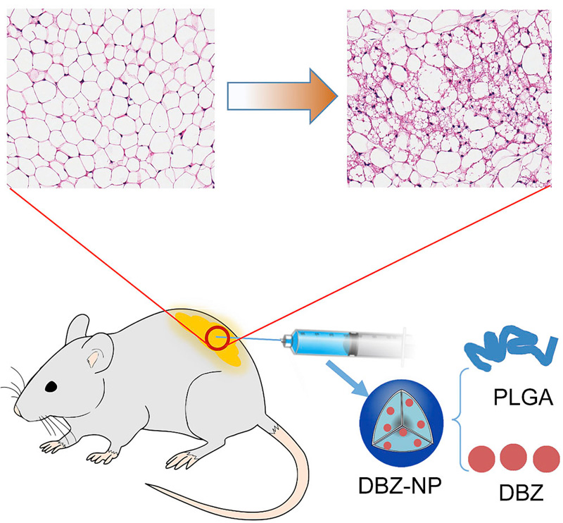 White adipose tissue, most associated with obesity, is a type of fat that collects in the body for long-term storage of energy. It's possible humans evolved to store white fat to act as insulation and energy storage. However, as we have become over-fed and less active, we have less need for the energy stored in white fat and it over-accumulates, leading to metabolic diseases such as diabetes and obesity. More than one-third of Americans are obese today, and nearly 10% have diabetes, according to the Centers for Disease Control and Prevention. Brown fat is more readily burned by the body, dissipating energy into heat. Scientists at Purdue University (Indiana, USA) have been looking for ways to decrease white fat in favour of brown fat, through a signalling pathway that is known to regulate cell differentiation and cell identity. In so-called Notch signalling, a cell sends a signal to a neighbouring cell to control that neighbour's gene transcription and identity. Disrupting that signal in a progenitor cell destined to become one of the undesirable white fat cells leads to the creation of brown fat. Meng Deng, an Assistant Professor in Agricultural and Biological Engineering, and colleague Shihuan Kuang, Professor of Animal Sciences, describe their latest research in the journal Molecular Therapy. They have, for the first time, used an engineered polymeric nanoparticle for controlled delivery of a Notch-signalling inhibitor directly to white fat cells. In a mouse model, the nanoparticle – made of an FDA-approved polymer known as PLGA and containing the drug Dibenzazepine – disrupted Notch signalling and led to the creation of brown fat cells.
