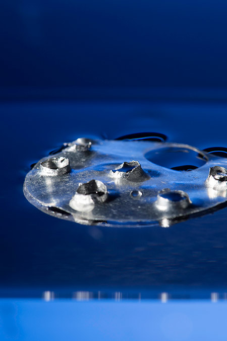 11th November 2019 Metals that float on water could lead to "unsinkable" ships Scientists at the University of Rochester have demonstrated a new technique for creating superhydrophobic metals that float on water, using femtosecond laser bursts to "etch" the surfaces and trap air.